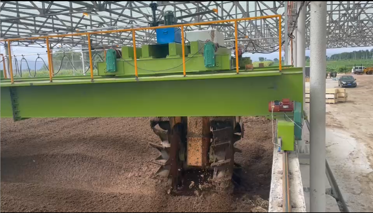 3.翻抛均匀彻底:三维立体翻抛方式(铲、抛、甩、移)使物料混合极为充分,无死角有效打碎结块,改善物料孔隙度,保证氧气均勺分布。